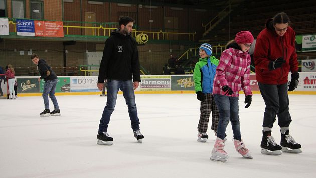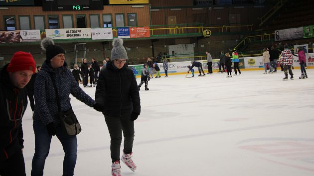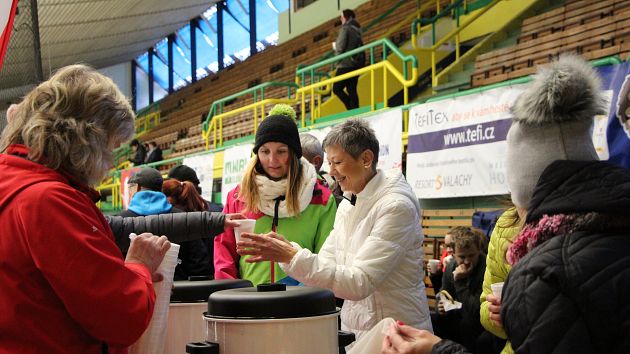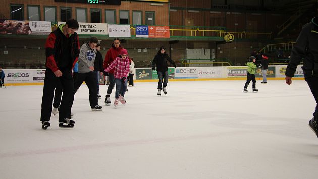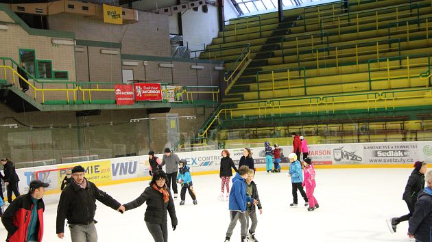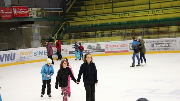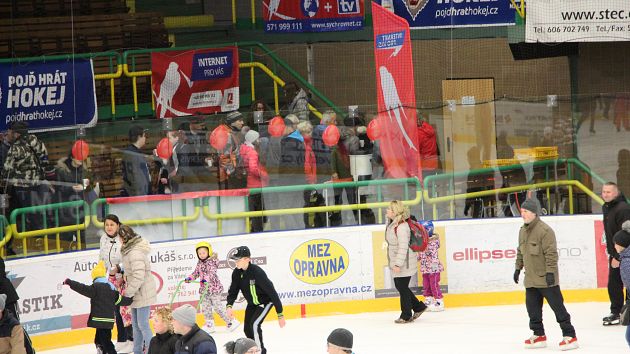 Příchozí si mohli užít dvouhodinové bruslení zdarma, během kterého se podávalo svařené