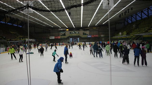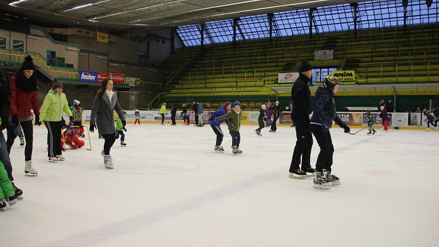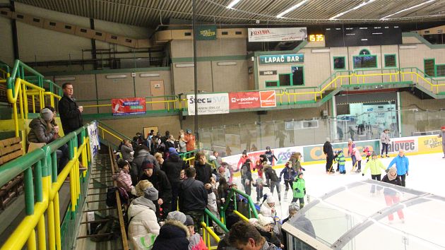 Příchozí si mohli užít dvouhodinové bruslení zdarma, během kterého se podávaly teplé